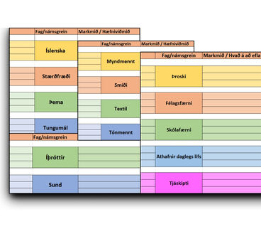 Einstaklingsáætlun sem liður í samþættingu á þjónustu í þágu farsældar barna - Erlend tungumál Íslenska Íslenska sem annað tungumál Íþróttir og hreyfing List– og verkgreinar Náttúrugreinar Samfélagsgreinar Samþætting námsgreina Skóli margbreytileikans Stærðfræði Upplýsinga og tæknimennt