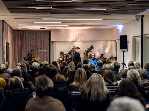 Útgáfuhóf fyrir tragikómískru skáldævisögu Andlit, eftir bæjarlistamann Garðabæjar (2019), Bjarna M. Bjarnasonar.