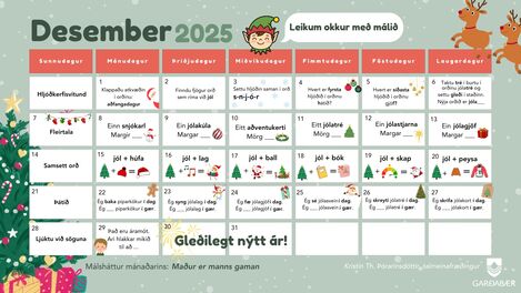 Kristín Theódóra starfar sem talmeinafræðingur á leikskólasviði Garðabæjar. Hún hefur sett upp dagatal fyrir desember sem hefur að geyma einfaldar talþjálfunaræfingar fyrir börn á leikskólaaldri.