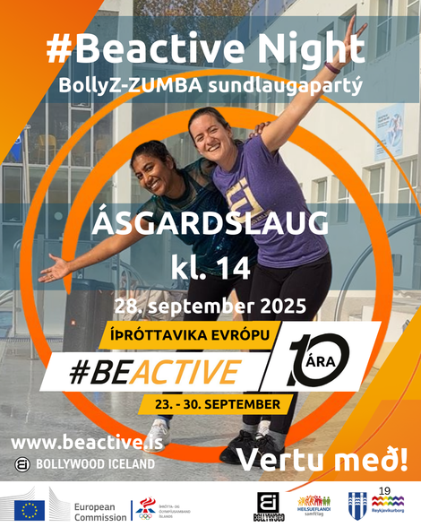 BollyZ-Zumba sundlaugapartí í Ásgarðasluag, klukkan 14. Haldið í tengslum við Íþróttaviku Evrópu sem er 23.-30. september.