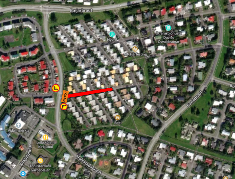 Götukaflinn verður lokaður fyrir alla umferð á meðan framkvæmdum, eins og sýnt er á meðfylgjandi lokunarplani.