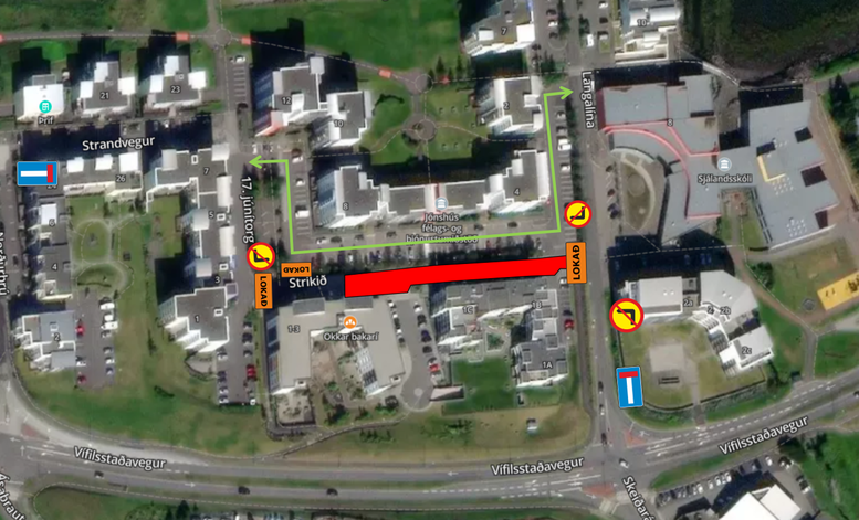 Götukaflinn verður lokaður fyrir alla umferð á meðan framkvæmdum stendur, eins og sýnt er á meðfylgjandi lokunarplani.
