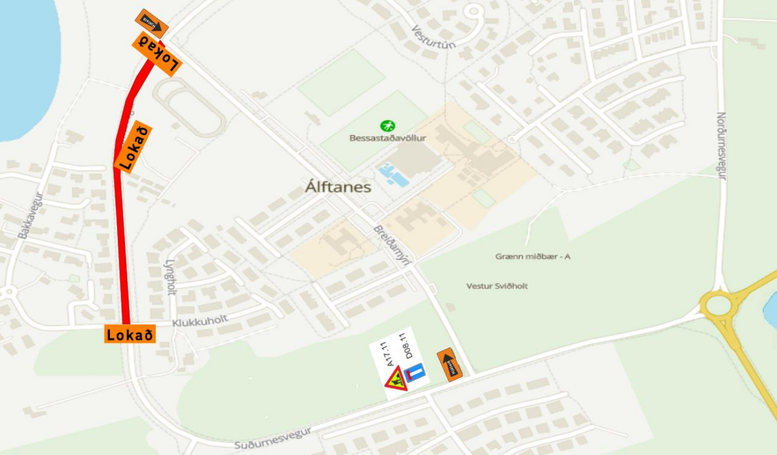 Byrjað verður upp úr hádegi og unnið fram eftir degi. Götukaflinn verður lokaður fyrir alla umferð á meðan framkvæmdum stendur, en hjáleiðir verða merktar.