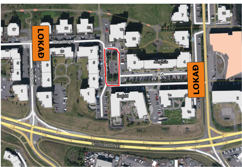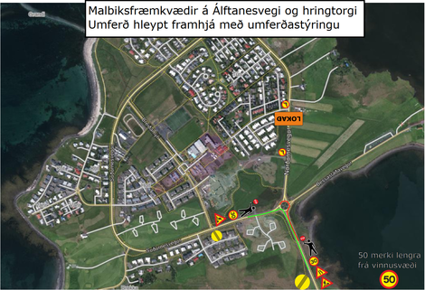 Götukaflinn verður lokaður fyrir alla umferð á meðan framkvæmdum stendur, eins og sýnt er á meðfylgjandi lokunarplani.