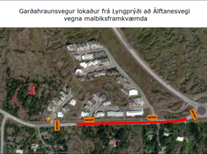 Vegna framkvæmda Vegagerðarinnar er nú lokað fyrir beygjuafrein af Álftanesvegi inn á Garðahraunsveg.