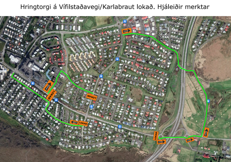 Hringtorgið verður lokað á meðan framkvæmdum stendur, ásamt nærliggjandi götuköflum, sjá meðfylgjandi lokunarplan. Hjaleiðir verða merktar.