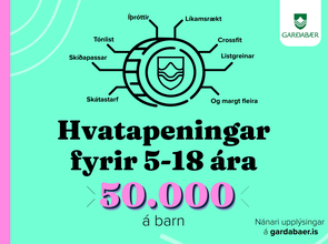 Börn fædd árin 2006-2015 og koma frá tekjulágum heimilum geta átt rétt á 25.000 kr. viðbótarstyrk vegna íþrótta- og tómstundaiðkunar haustið 2021. Ef heildartekjur heimilis eru undir viðmiðunarmörkum má sækja um styrkinn hjá Garðabæ, fyrir 31. desember 2021