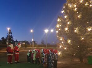 Það var fallegt vetrarveður úti þegar leikskólabörn úr Garðabæ komu saman á Garðatorgi til að tendra ljósin á jólatrénu á Garðatorgi föstudaginn 25. nóvember.