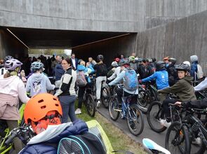 Flottir hjólakrakkar úr Sjálandsskóla vígðu nýju undirgöngin