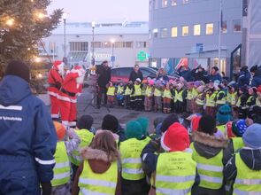 Það var mikið fjör á Garðatorgi þegar hópur leikskólabarna mætti til að hitta tvo hressa jólasveina og aðstoða þá við að tendra ljósin á trénu.