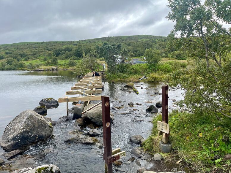 Framkvæmdum við endurnýjun á göngubrúnni í friðlandi við Vífilsstaðavatn miðar vel.