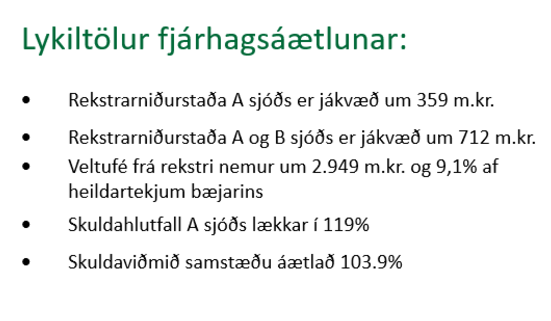 Markmið fjárhagsáætlunar er að halda álögum lágum, tryggja áframhaldandi lífsgæði íbúa og halda áfram að þróa og bæta þjónustu sveitarfélagsins.