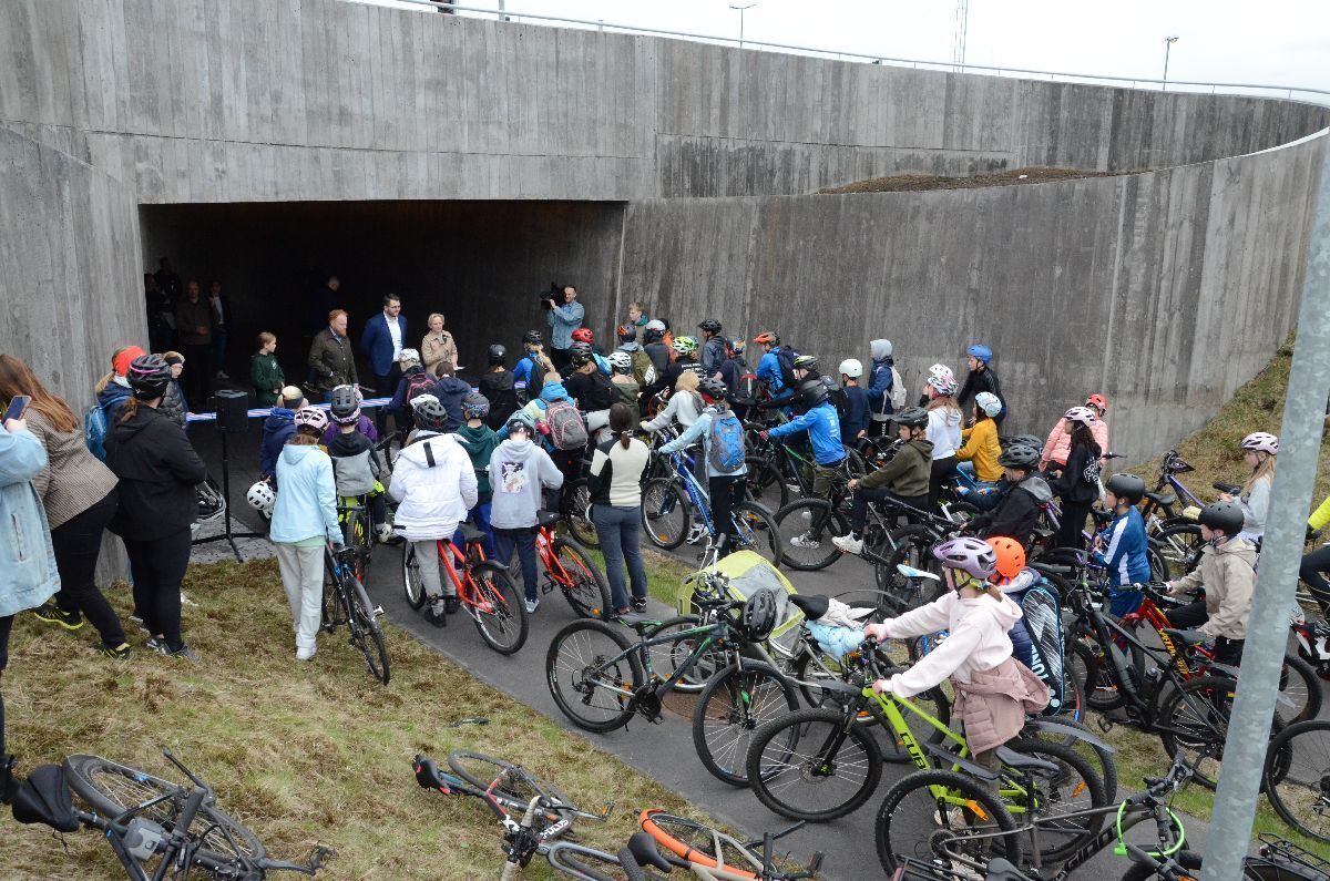 Flottir hjólakrakkar úr Sjálandsskóla vígðu nýju undirgöngin