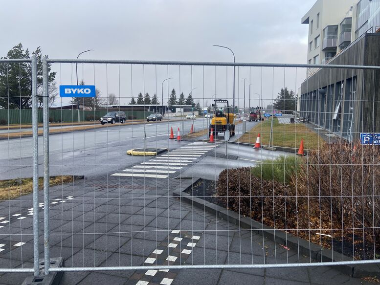 Meðfylgjandi mynd sýnir hvar lokunin er, einnig bendum við gangandi vegfarendum á að nýta sér gangbrautina yfir Vífilstaðaveg til að komast leiðar sinnar um þennan kafla Vífilstaðavegs.