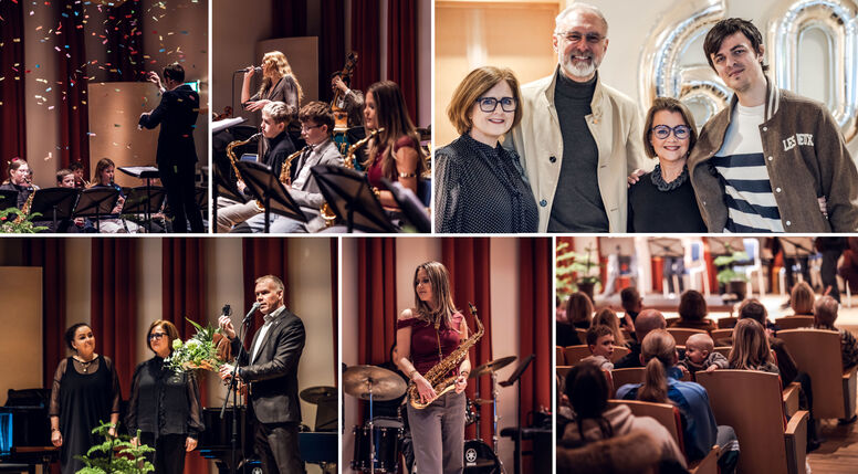 Blásarasveitir skólans komu einnig fram sem og strengjasveitir, nemendur í rithmísku námi og klassísku þannig að úr varð blanda af frábærri tónlist. Ljóst er að kennarar og nemendur hafa lagt sig fram við að gera afmælishátíðina sem glæsilegasta. Einnig vöktu fumlausar róteringar á sviði sérstaka athygli en reglulega þurfti að skipta út stólum og nótnastöndum eftir stærð og samsetningu hópa.