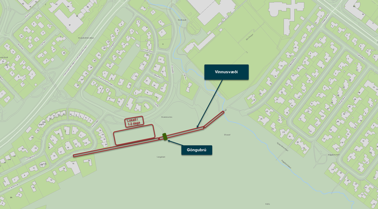 Vegna endurnýjunar Veitna á hitaveitulögn verður göngustígur í Hvammi frá Hraunhólum að íþróttasvæði Garðabæjar lokaður til nóvemberloka. Unnið verður á grasblett á milli Garðafitjar og göngustígs. Vinnusvæðið má sjá á meðfylgjandi mynd og á vef Veitna. Á myndinni má sjá „göngubrú“ merkta inn, samkvæmt Veitum verður allajafna hægt að fara yfir þá brú á meðan á framkvæmdum stendur.