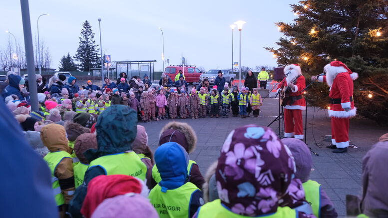 Hópur leikskólabarna kom saman til að tendra ljósin á jólatrénu
