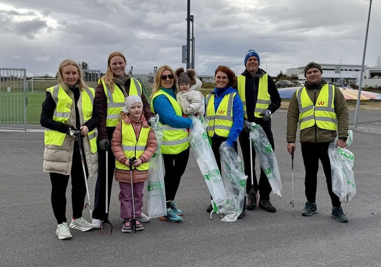 Stella, Þorbjörg, Valbjörg María, Sigríður Hulda, Sóldís, Björg, Almar og Ingvar tóku til hendinni. Myndin er tekin í upphafi hreinsunarinnar.