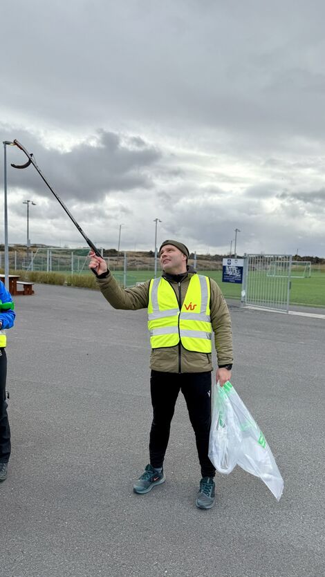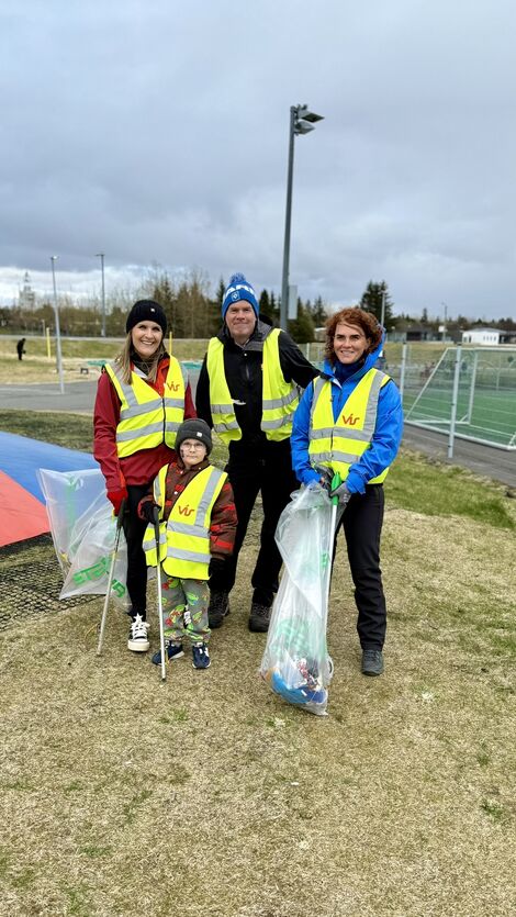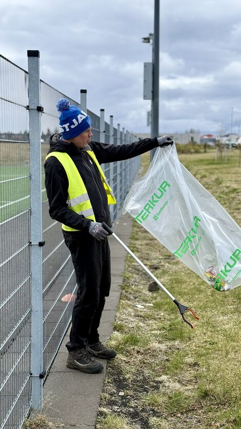 Bæjarfulltrúar brettu upp ermar og hreinsuðu svæðið umhverfis Ásgarð í upphafi hreinsunarátaks Garðabæjar sem er nú hafið og stendur yfir til 12. maí.