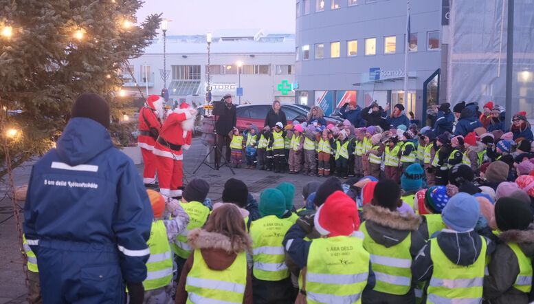Almar Guðmundsson bæjarstjóri var jólasveinunum til halds og trausts þegar kom að því að telja niður með börnunum.
