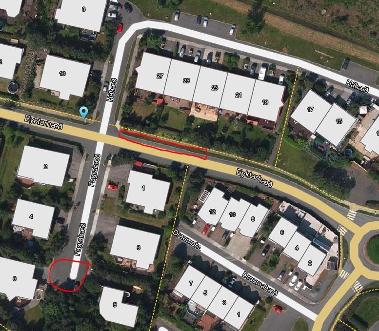 Upptökur í Hæðahverfi - bílar staðsettir Eyktarhæð og Fögruhæð