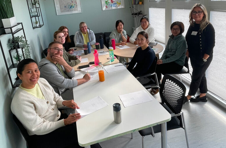 Tíu starfsmenn á leikskólanum Mánahvoli taka þátt í íslenskunámskeiði. Nemendurnir koma ýmist frá Indónesíu, Póllandi, Úkraínu, Kína, Víetnam eða Litháen.