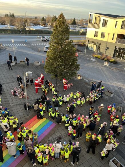 Það var fallegt vetrarveður úti þegar leikskólabörn úr Garðabæ komu saman á Garðatorgi til að tendra ljósin á jólatrénu á Garðatorgi föstudaginn 25. nóvember. Elstu börn úr leikskólum bæjarins fjölmenntu á torgið og áttu þar hugljúfa jólastund saman, Almar Guðmundsson bæjarstjóri heilsaði upp á börnin og fékk þau til að telja niður saman þegar ljósin voru tendruð á jólatrénu. Jólatréð kemur að þessu sinni úr garði íbúa í Víðilundi.