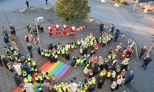 Það var fallegt vetrarveður úti þegar leikskólabörn úr Garðabæ komu saman á Garðatorgi til að tendra ljósin á jólatrénu á Garðatorgi föstudaginn 25. nóvember.