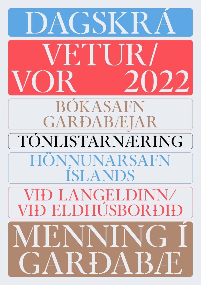 Fjölbreytt menningardagskrá fyrir vetur/vor 22 er kynnt í nýjum dagskrárbæklingi en bæklingurinn var borinn út í öll hús Garðabæjar þann 29. desember 2021.