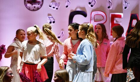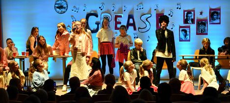 Nemendur á miðstigi Flataskóla í Garðabæ sýndu söngleikinn Grease í marsmánuði. Það voru nemendur í leiklistarfjölvali á miðstigi sem höfðu æft söngleikinn í fjölvalstímum á haustönninni undir stjórn þriggja kennara skólans.