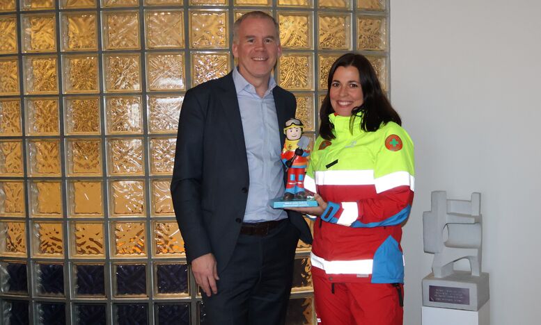 Sala á neyðarkallinum hófst í gær. Hrafnhildur Sigurðardóttir, liðsmaður í Hjálparsveit skáta Garðabæ og kennari við Sjálandsskóla, kom við á bæjarskrifstofu Garðabæjar og veitti Almari Guðmundssyni neyðarkallinn sem í ár er hamfarasérfræðingur, með vísan til þeirra fjölmörgu hamfara sem björgunarsveitir Landsbjargar hafa þurft að bregðast við á undanförnum árum.