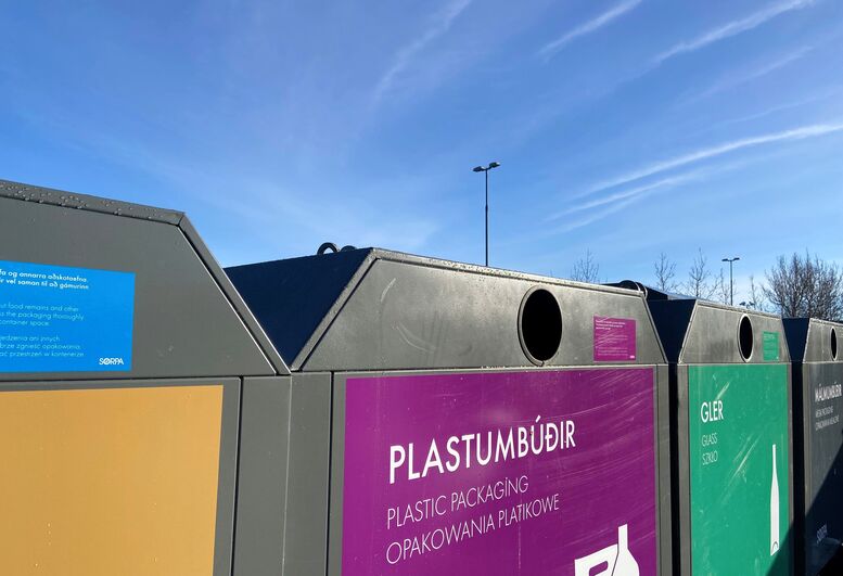 Stórar grenndarstöðvar taka á móti gleri, málmumbúðum og skilagjaldsskyldum flöskum og dósum, auk plastumbúða og pappír og pappa.