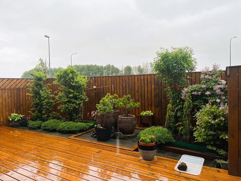 Með eindæmum snyrtileg og blómrík lóð og ber merki þess að vera svolítið framandi. Á pallinum við anddyri eru gróðurkassar fyrir matjurtir og pottar með lyngrósum, fjölærum plöntum og fleiru. Sannkallað augnayndi.