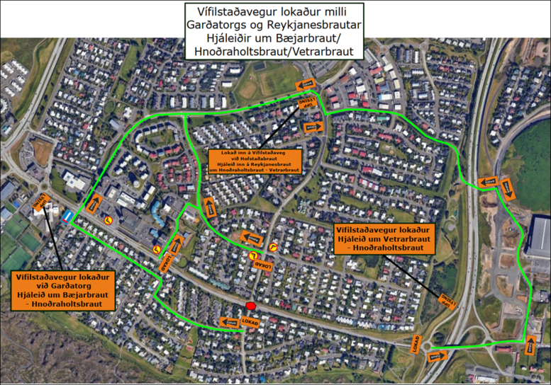 - Hringtorg Vífilsstaðavegar og Karlabrautar: Byrjað verður um klukkan 9:00 og unnið til hádegis. Áætlað er að opna fyrir umferð um klukkan 13:00