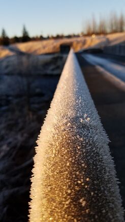 Frostnálar á hitaveitustokki. Ljósmyndari: Pálmi Símonarson