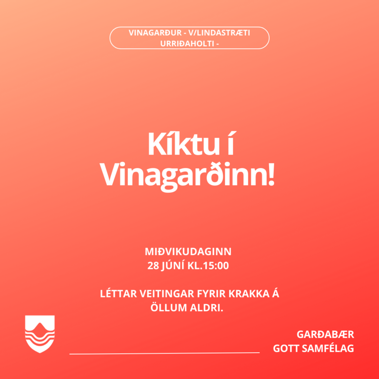 Nú opnum við Vinagarð í Urriðaholti! Miðvikudaginn 28. júní klukkan 15:00 verður haldin formleg opnunarhátíð í Urriðaholtinu.