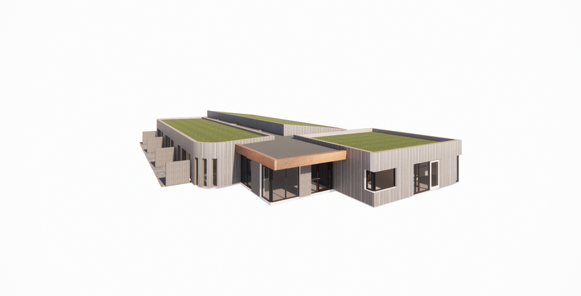 Byggingin er á einni hæð og skal verktaki steypa grunn, veggi og plötu, innrétta og ganga frá utan sem innan, ganga frá lóð og fullgera húsið samkvæmt útboðsgögnum. Byggingin er staðsteypt og einangruð að utan, klædd með timburklæðningu.