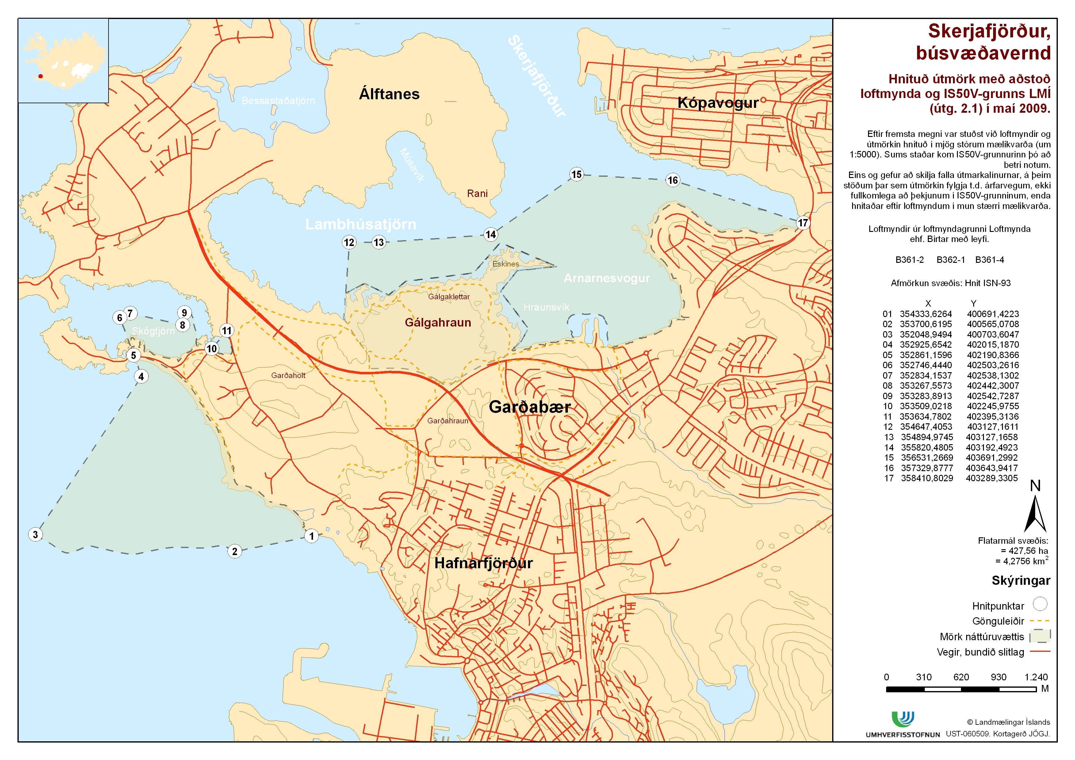 Uppdrættir sem sýna mörk hinna friðlýstu svæða