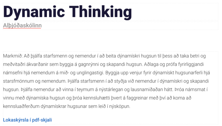 Útdrátturinn er skilinn eftir tómur, en hægt er að afrita eldri skráningu inn í meginmálið og breyta því svo með ritlinum. Hlekkur í lokaskýrslu eða önnur pdf skjöl ættu að skila sér rétt við copy-paste.